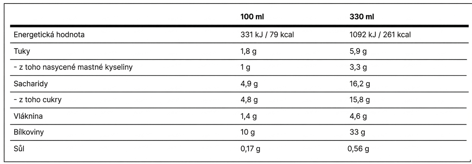 Obsah laktózy < 1,0 g/100 ml.